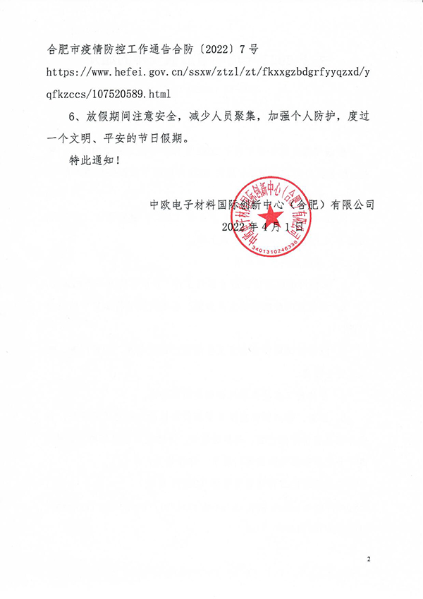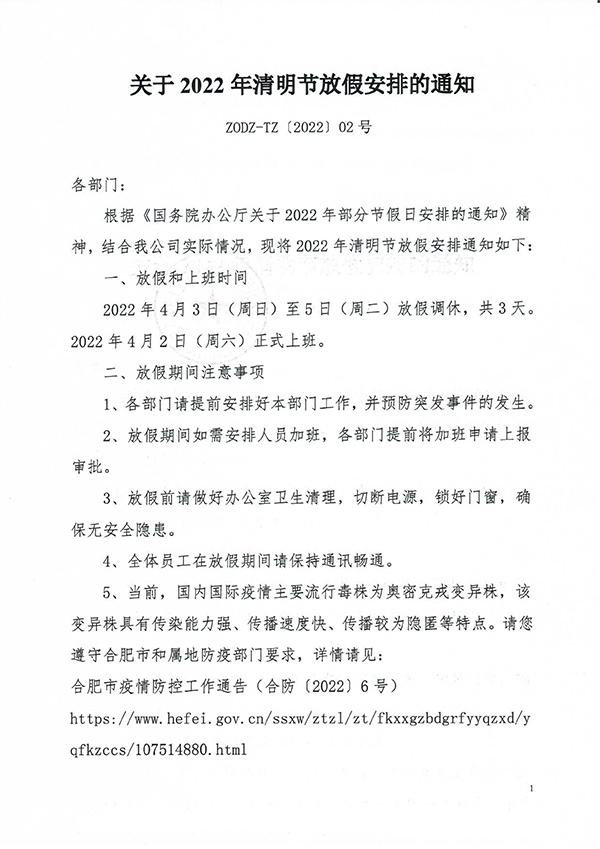 关于创新中心2022年清明节放假安排的通知