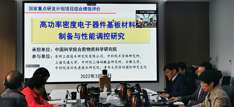 3月30日,由中国科学院合肥物质科学研究院牵头承担的国家重点研发计划“战略性先进电子材料”重点专项“高功率密度电子器件基板材料的制备与性能调控研究”项目综合绩效评价会议通过线上形式召开。绩效评价专家组由来自云南大学、浙江大学、中国科学院电工研究所等单位的11位专家组成,组长由云南大学柳清菊教授担任。中国科学院重大任务科技局唐清研究员、合肥研究院科研规划处处长屈哲、科研规划处主管方秀芬、财务处主管会计师李报春出席会议,项目及课题1负责人田兴友研究员、课题2负责人有研工程技术研究院有限公司郭宏研究员、课题3负责人中国科学院上海硅酸盐研究所曾宇平研究员、课题4负责人安徽大学钱家盛教授、课题骨干及科研管理人员等40余人参会,会议由科技部高技术研究发展中心“战略性先进电子材料”专项主管杨斌主持。