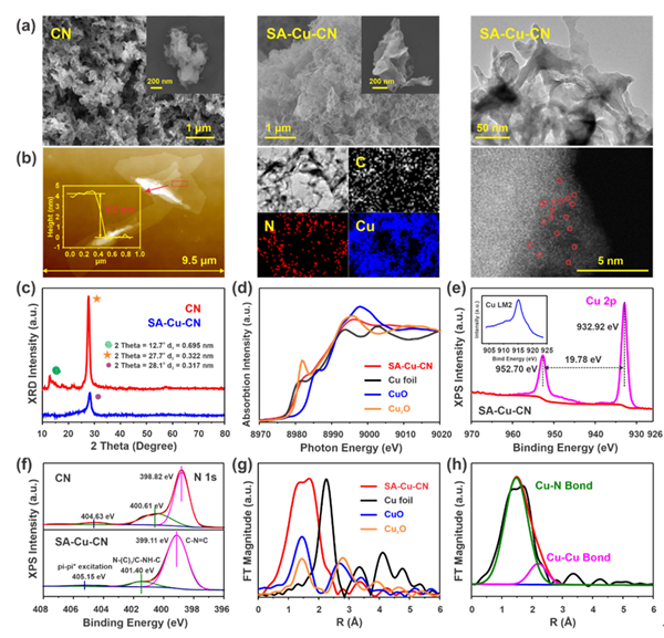 图1. CN和SA-Cu-CN的形貌和结构表征。