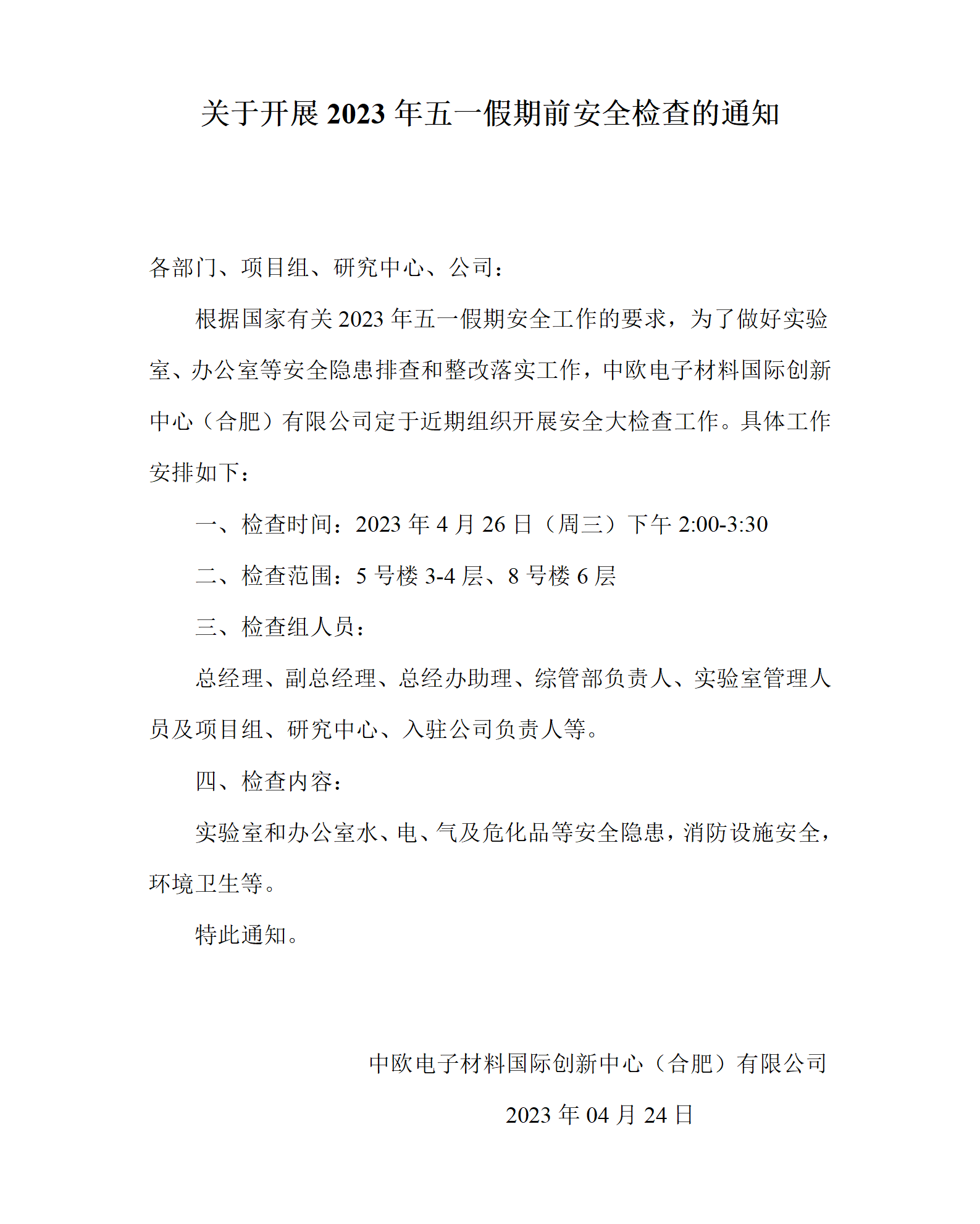 江南官方网站_江南online(中国)2023年五一假期前安全检查的通知
