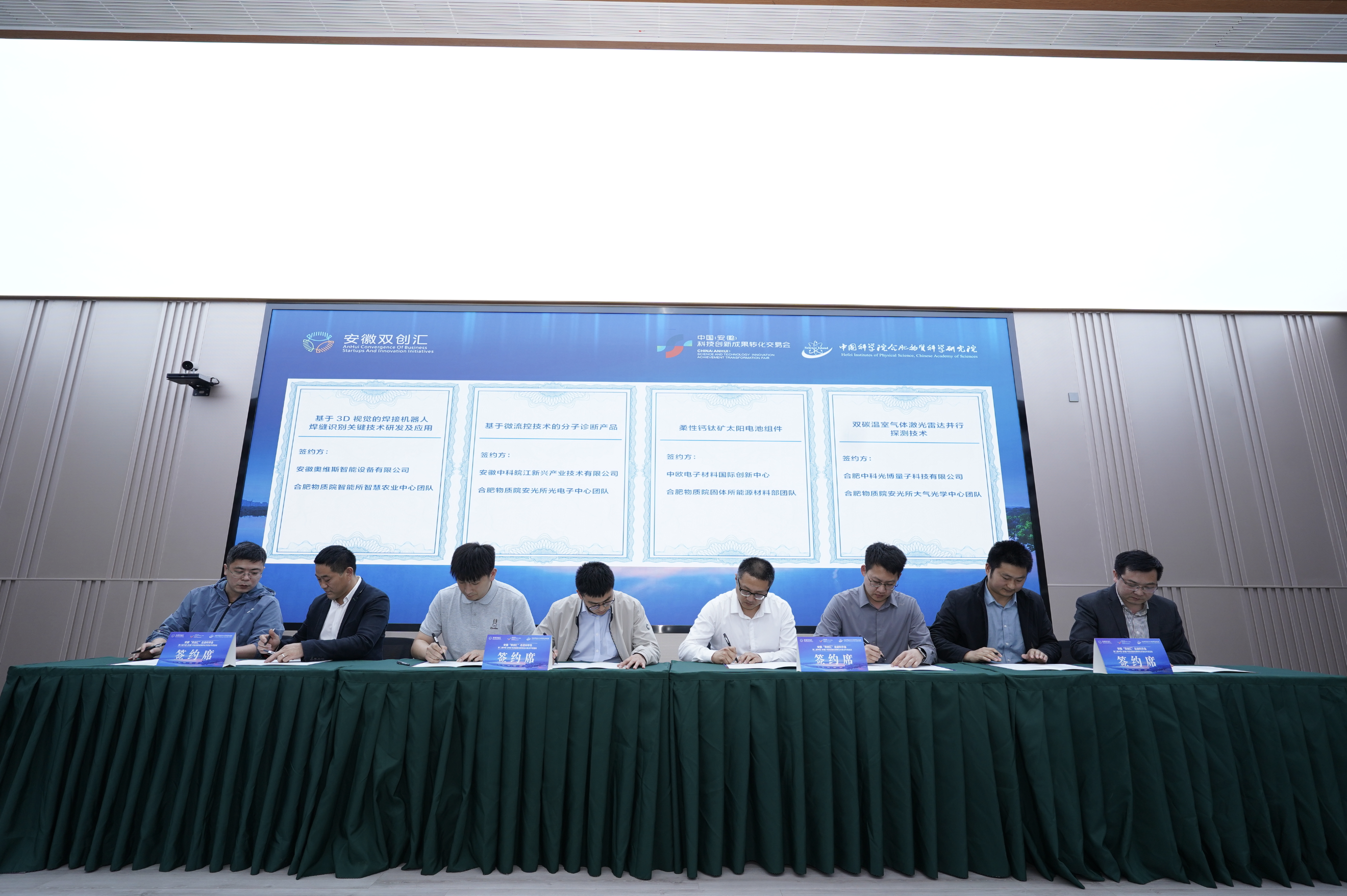 依托科学岛平台优势、资源优势,本次活动邀请了科学岛内科研人员现场路演、推介优秀科技成果,并展示科技创新成果的最新应用和前沿动态。活动现场,共有8项科技成果项目完成签约,其中江南官方网站_江南online(中国)与合肥物质院固体所能源材料部团队柔性钙钛矿太阳电池组件项目成功签约。