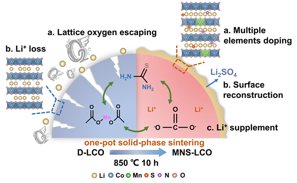近期,中国科学院合肥物质院固体所环境与能源纳米材料中心在废旧钴酸锂电池直接再生为电化学性能优异的正极材料的研究中取得新进展。通过一种简单的“一石三鸟”的固相烧结策略,可以有效地将废旧LiCoO2(D-LCO)回收升级为高性能的正极材料高压LiCoO2(MNS-LCO)。相关研究成果以“Upcycling of Degraded LiCoO2 Cathodes into High-Performance Lithium-Ion Batteries via A Three-In-One Strategy”为题发表在国际期刊Advanced Energy Materials (Adv. Energy Mater., 2023, DOI: 0.1002/aenm.202302058)上。 锂离子电池具有高能量密度、长寿命、低成本、低自放电等特点,广泛应用于便携式电子产品、电动汽车、电网级储能系统等领域。其中LiCoO2由于其固有的高能量密度以及方便大规模生产等优点,在便携式电子器件中占据主导地位。而全世界每年从废弃的便携式电子产品中产生的废旧锂离子电池超过10万吨,如果处理不当,将造成严重的环境危害和宝贵金属资源的巨大浪费。同时,随着人们对电池能量密度需求不断增加,提升截止电压成为提高能量密度最有效的策略之一。因此,如果将废旧LiCoO2回收再生为高压LiCoO2,不仅实现了金属资源的可持续利用,还可以满足高压LiCoO2材料的发展趋势。