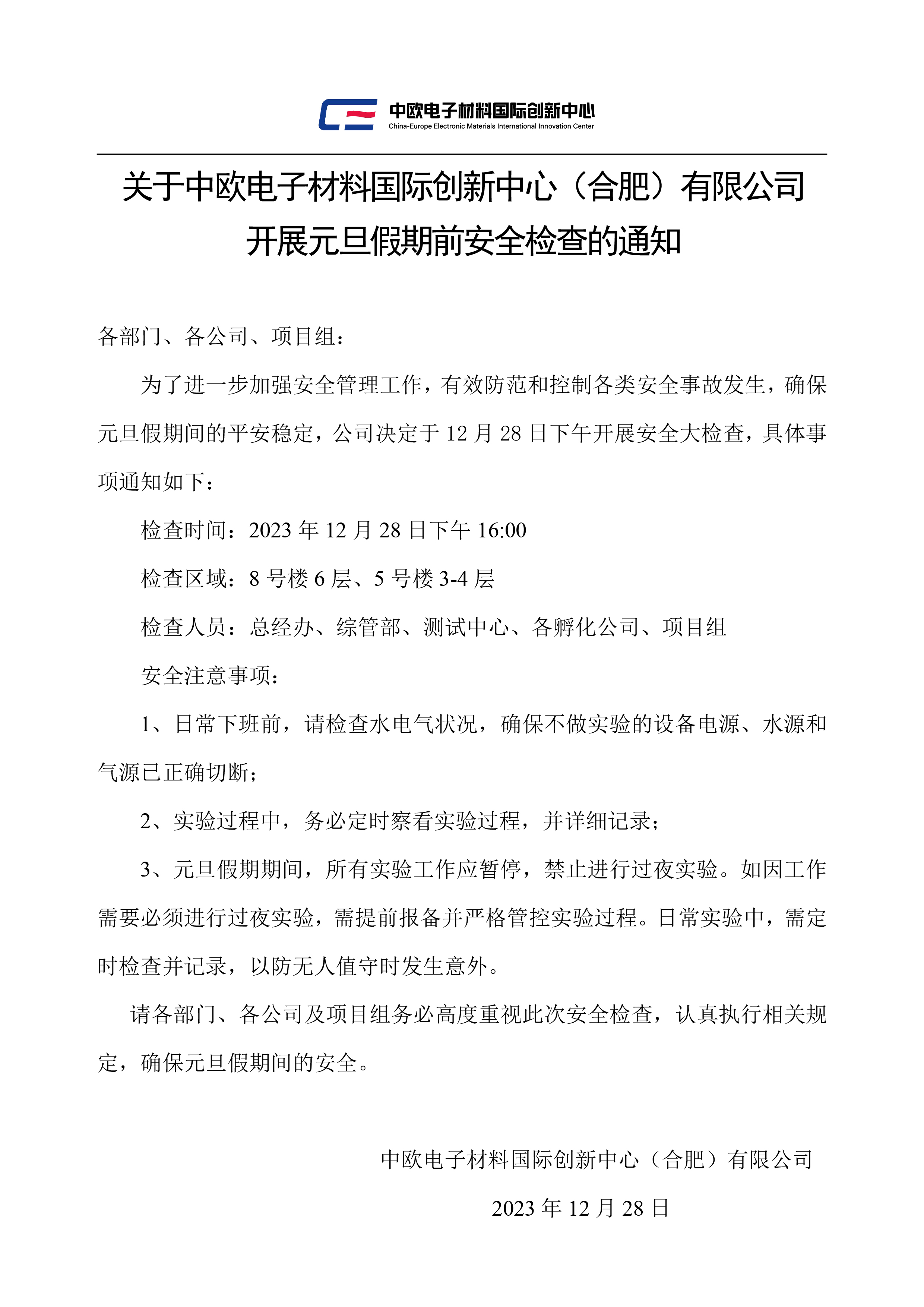 江南官方网站_江南online(中国)元旦假期前安全检查的通知