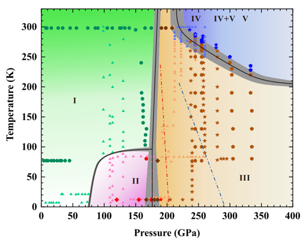 一直以来,氢和氘的高压相图是凝聚态物理领域的热门研究方向,在很宽的压力和温度范围内被广泛研究。目前实验上已经发现了氢的五个高压固相(相I、II、III、IV、V)。然而对氘化氢(HD)的高压相图研究却仍存在诸多疑惑,亟待完善,甚至存有争议,如相HD-IV*和相HD-PRE是否存在,是否存在其他新相。